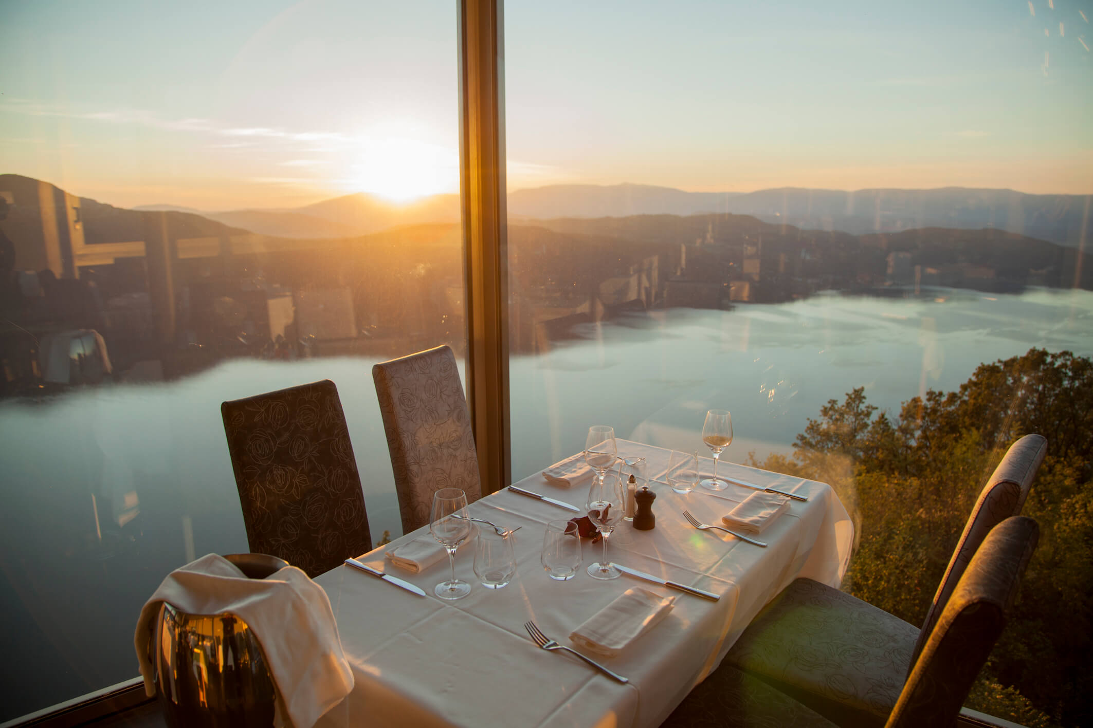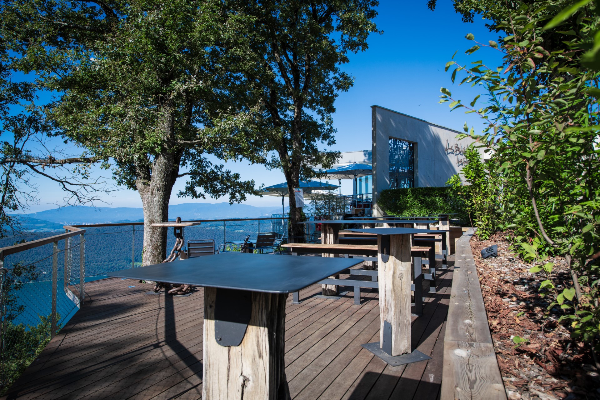 Restaurant en apesanteur, Le Belvédère de la Chambotte se vit chaque instant de façon unique. Comme connecté au céleste, les nuages défilent. Le vent fouette, la brise caresse. Le soleil surgit puis se cache, la lumière sculpte les sommets, irise le lac, révèle l’Abbaye Royale d’Hautecombe. Tel est ce site à l’énergie incroyable, un don de la Terre. Levers et couchers du soleil sont un privilège.